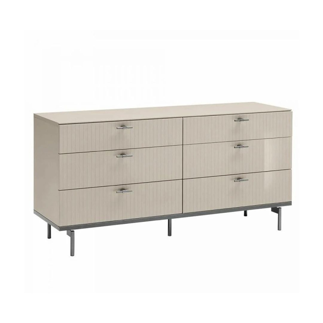 The Pearl Line Eco Veneer High Gloss finish. Knurled steel handles add character to the collection.