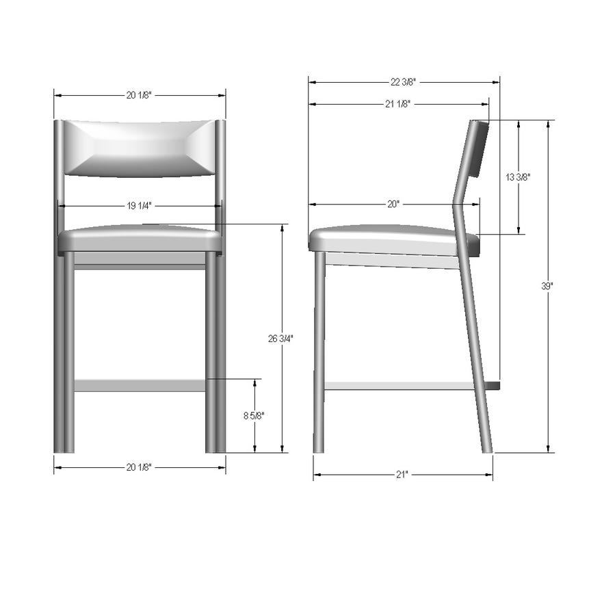 39″ H x 20 1/8″ W x 22 3/8″ D. Seat Height 26 3/4″