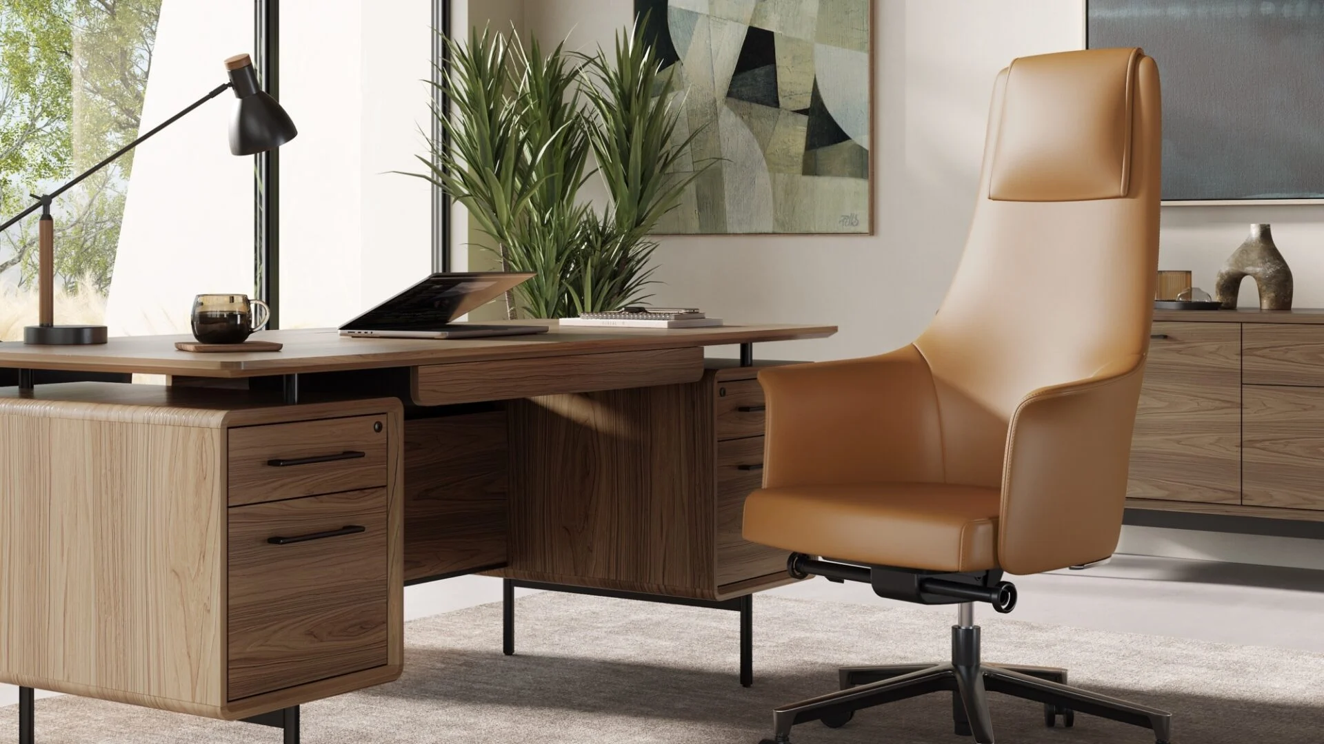 This sleek executive office chair cradles you in supple, durable Nappa leather while its tough steel frame has your back. A host of customizable features ensures you’re always comfortable and in control.