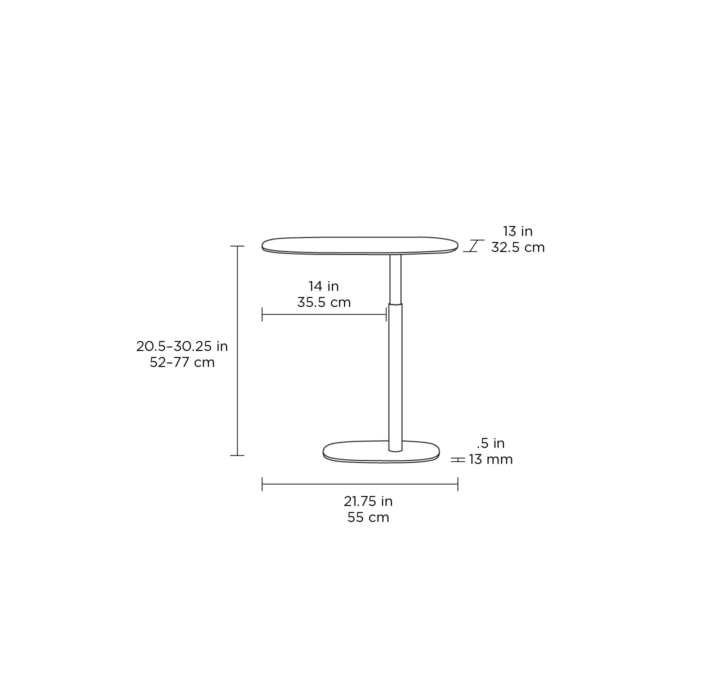 A unique, height-adjustable table that takes your work surface to a new level. This go-anywhere table is a great sofa or bedside companion. Whether working on your laptop or snacking in front of the TV, Serif adjusts across a 10″ range as needed.