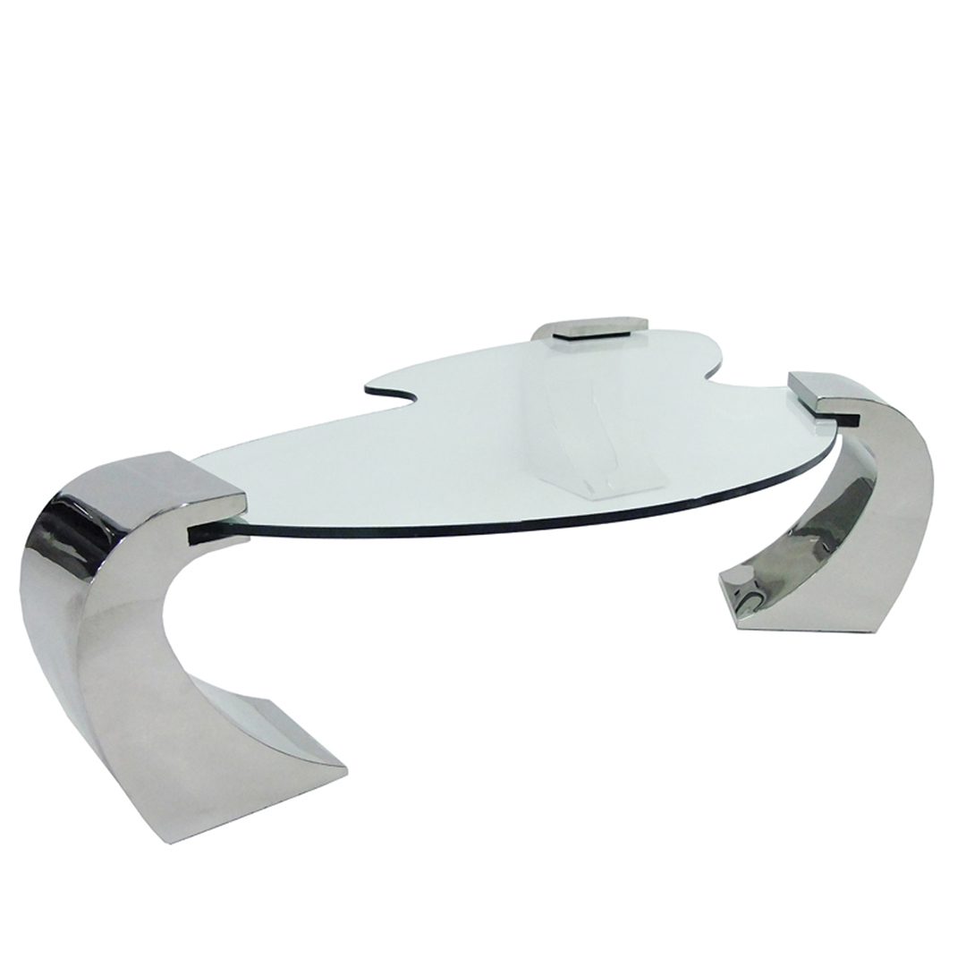 Coffee Table in 15mm Clear S-shaped Tempered Glass with Polished Stainless Steel legs.