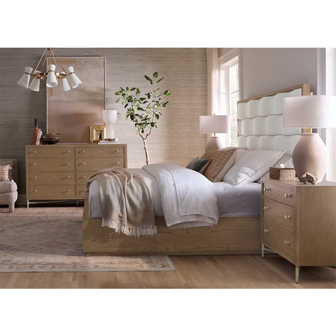 Sonnet features a light, airy and versatile aesthetic empowering our customers to create a unified, on-trend look throughout their homes. Crafted with quartered and cathedral-cut white oak veneers in a light earthen-toned finish named Wren, the Sonnet collection features a mix of natural textures and refined, minimalist silhouettes.