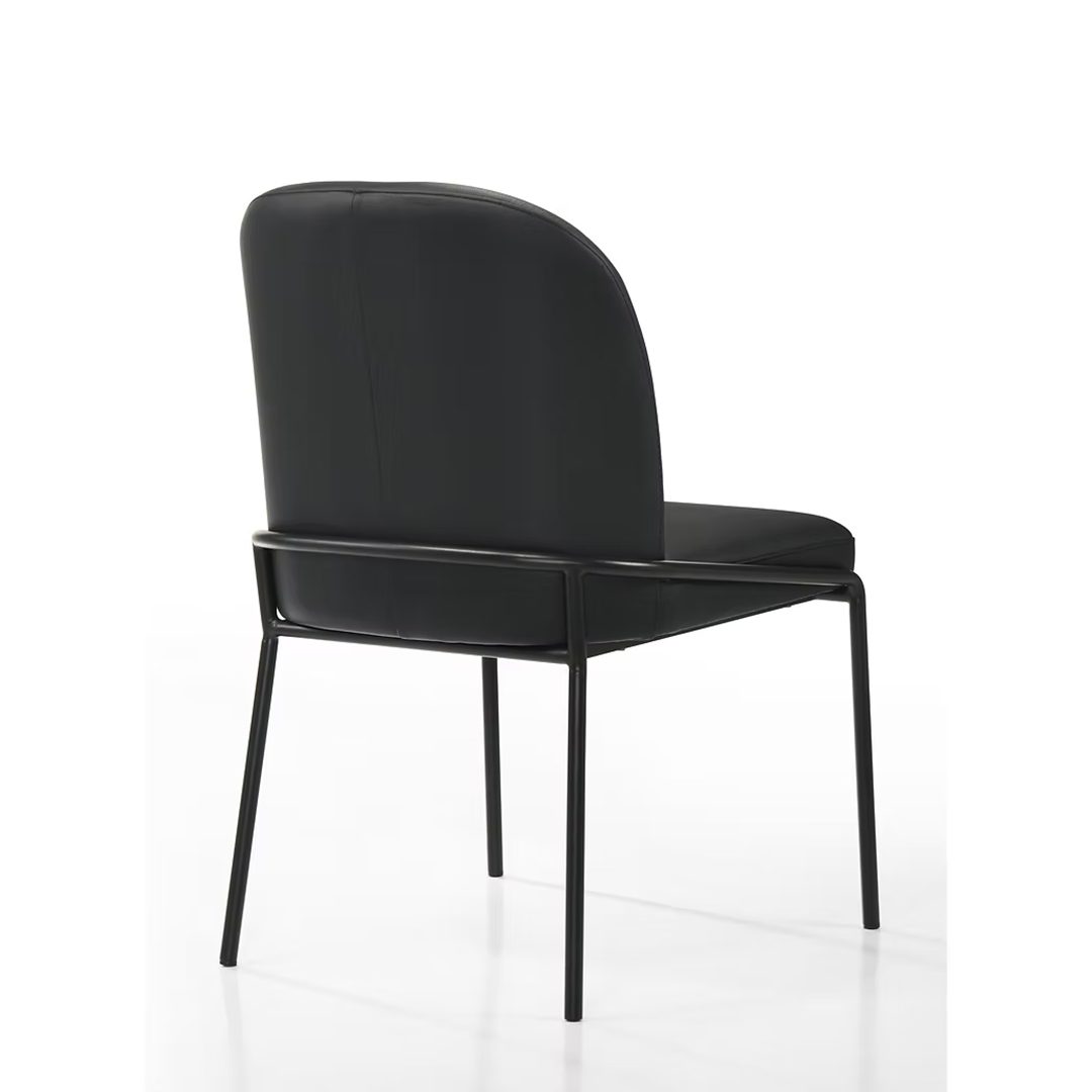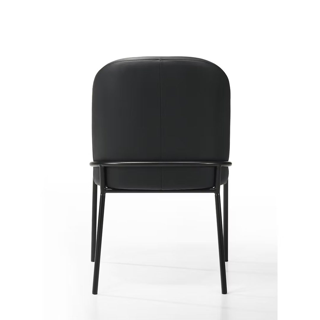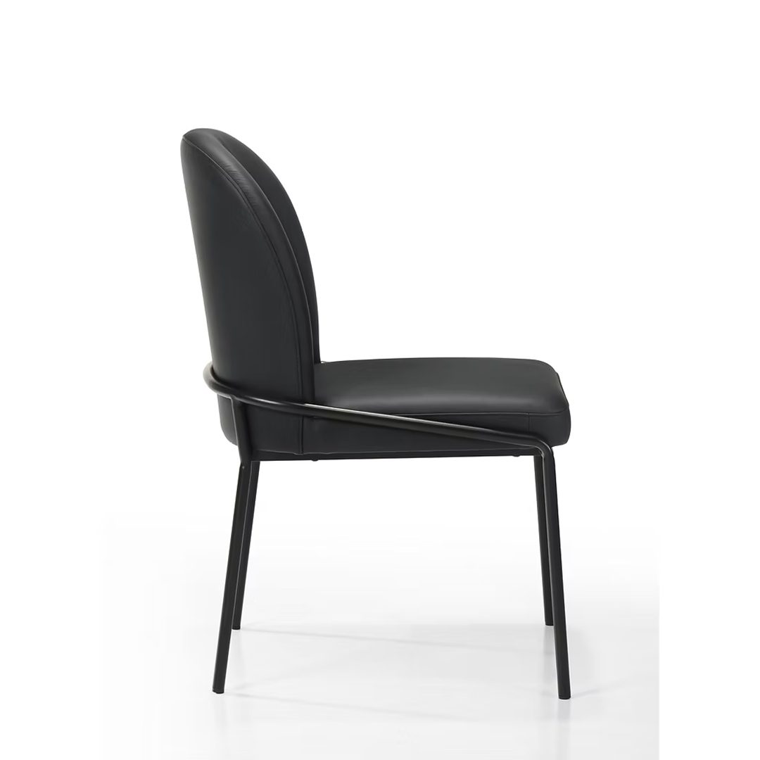 Curvature, comfort, and timeless design are the main ingredients of this beautiful dining chair, covered in top-grain leather and finished with a thin black metal tube frame. A fine balance of contemporary and transitional looks.