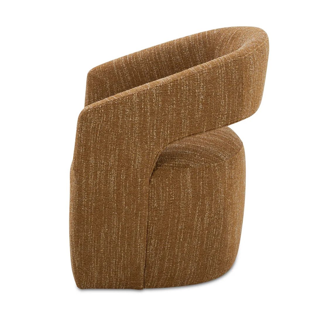 Upholstered in easy-to-clean NeverFear™ performance fabric, this rolling dining chair brings unexpected comfort to the table. Its curved back hugs just right, while a feather- and foam-filled seat offers sink-in softness. With its cool gray tone and hidden casters, Barrow rolls effortlessly through every meal, refill, and round of conversation.