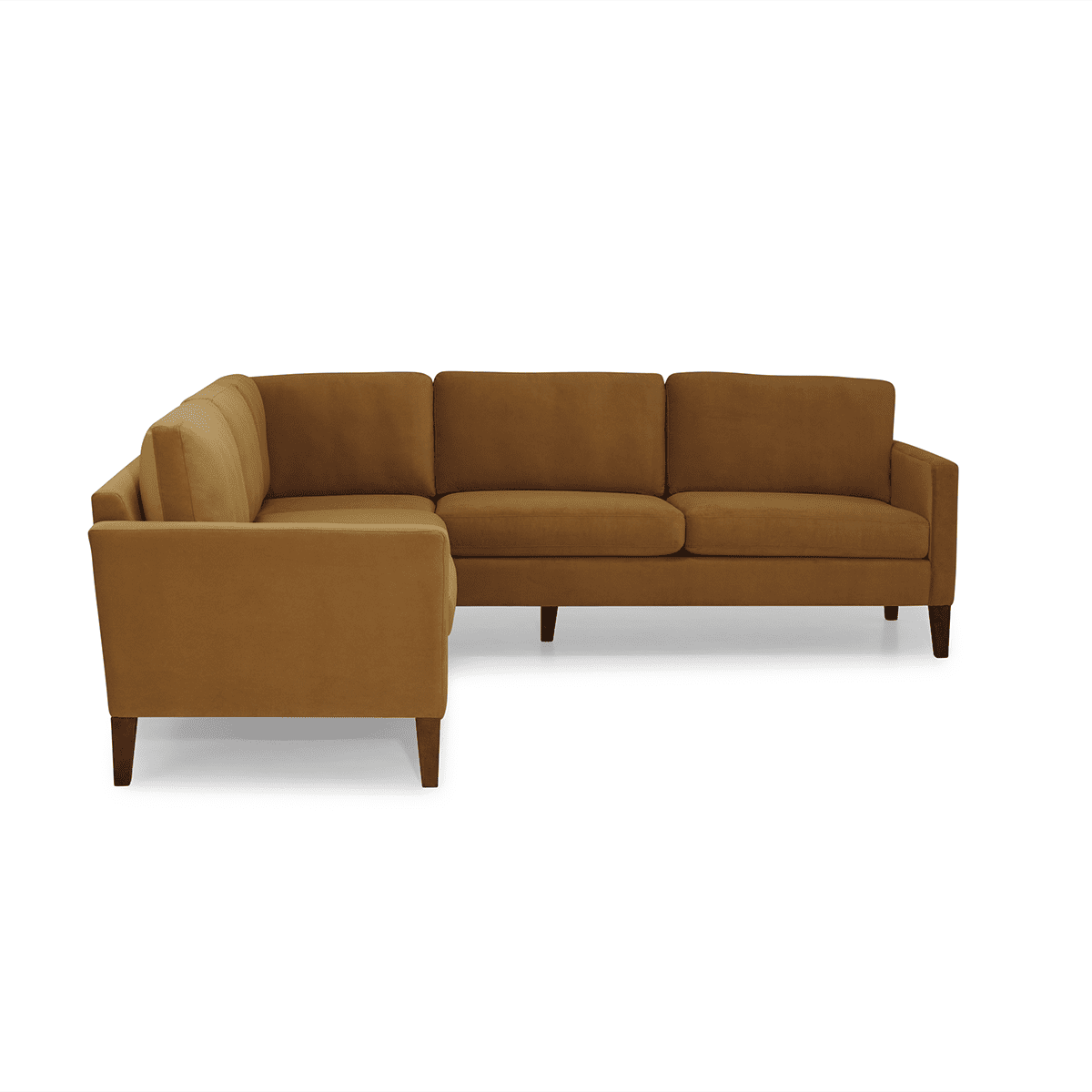 The Soren Track Arm upholstery collection offers classic styling and proportions to fit in any space. Pairing thin track arms with high two-sided tapered wooden legs in a cognac finish, Soren creates a visually light silhouette in any room. This approachable design sit slightly more proper, but still offers plenty of comfort.