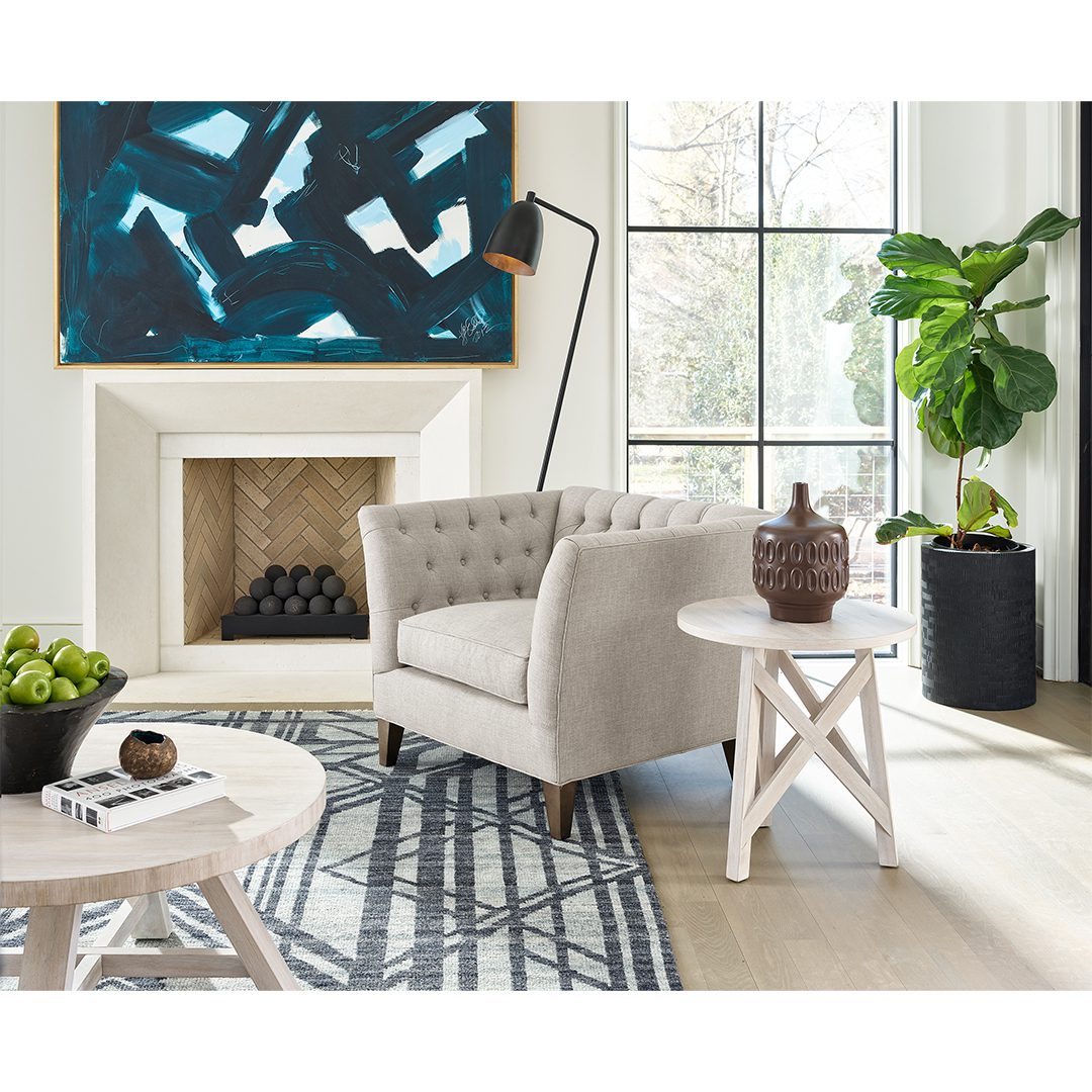Elevate the look and feel of living room spaces with the Duncan Chair, designed with an opulent frame and exquisitely finished with button-tufted upholstery.